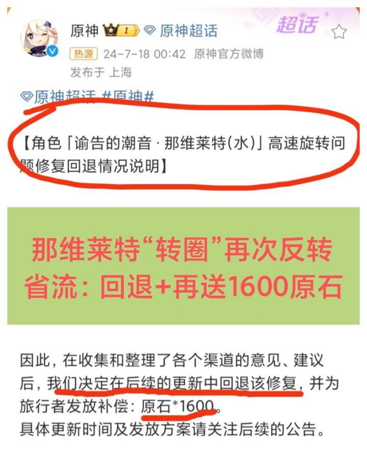 那维莱特“转圈”反转❗回退+送1600原石❗❗❗