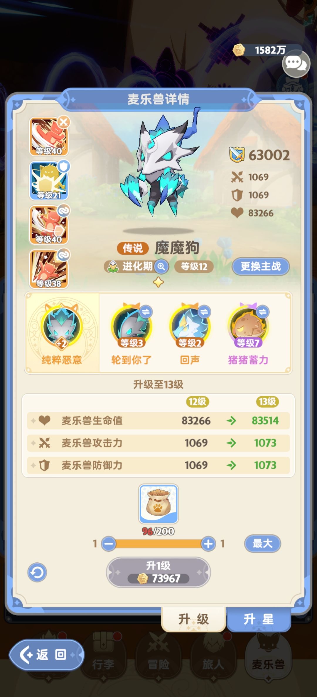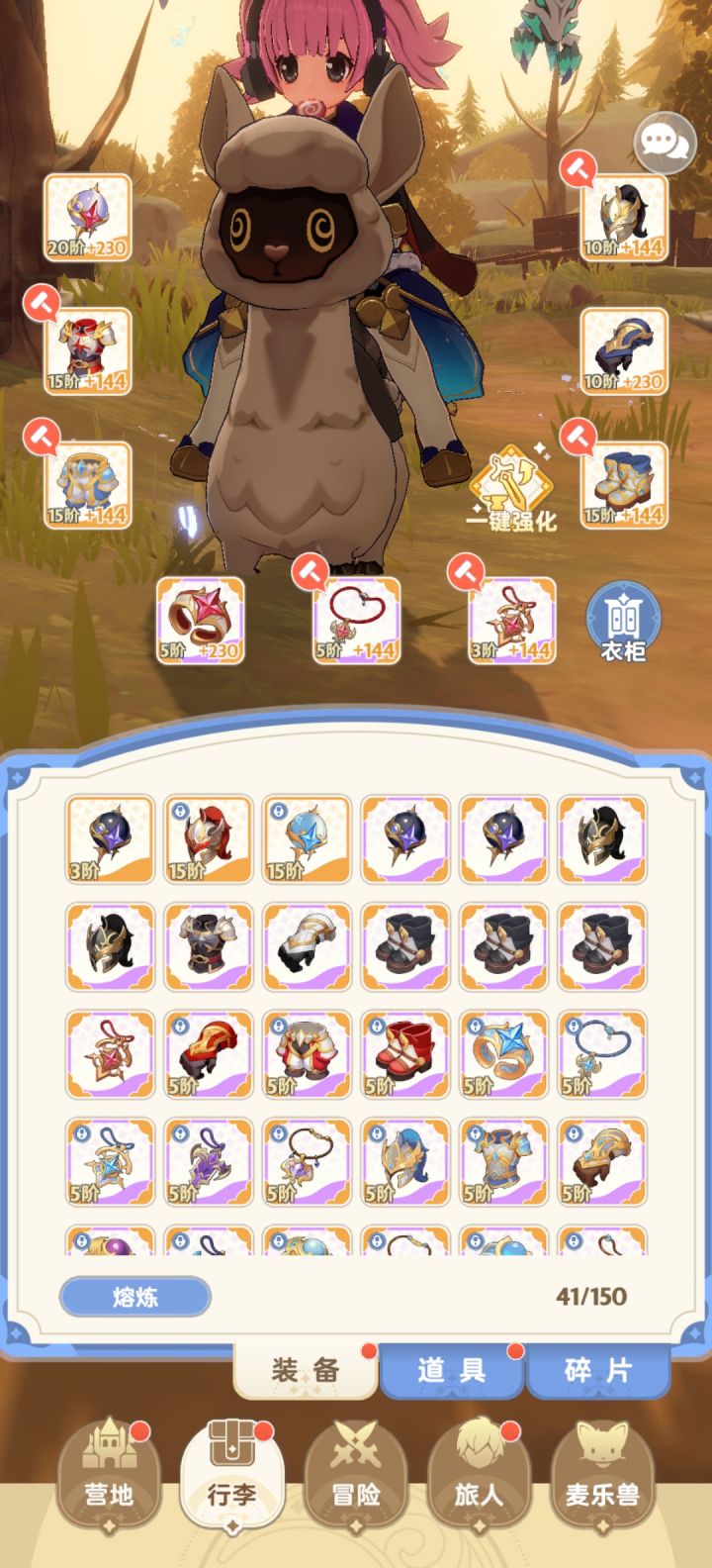 图8宠物:主战选魔魔狗,特技带轮到你了、回声、猪猪蓄力。共鸣21级吃到全能即可。招式攻击位首选爆伤,防御位蓝色凑数,复合就看情况堆攻击力全能,可以根据自己的伤害堆点技巧暴击,减少凹的次数。