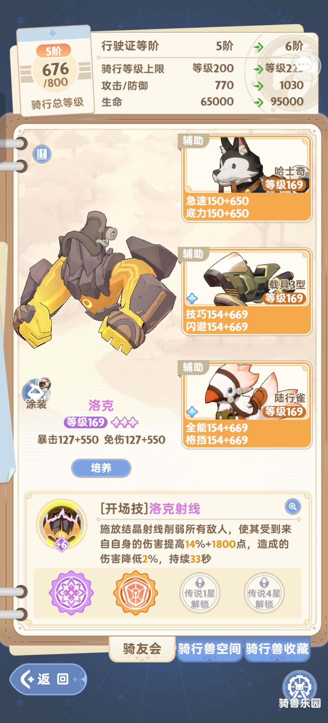 图7坐骑:选择紫2洛克,因为天赋要吃加成拖到30秒,所以必须要紫2。要是金坐骑buff够30秒那当然选金坐骑,因为我不够所以就没选。哈士奇可以换成紫色加全能的狼拉尔夫。