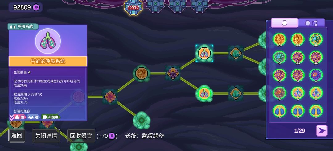 核心伤害触发部件:食尾虫的触角,独角仙的触角,古蛟的触角,三个后面链接牛蛙呼吸系统