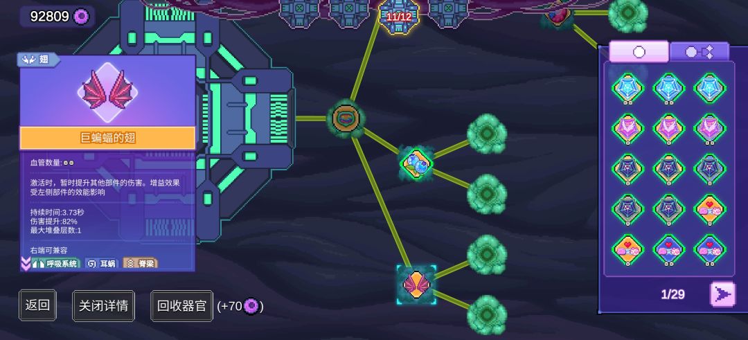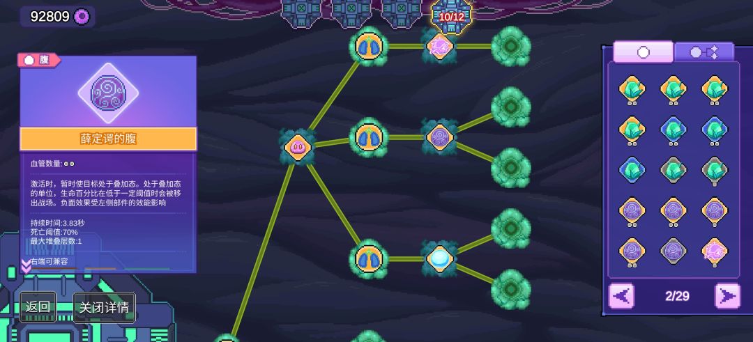 思路就是最快的时间内把触角叠满,游戏比较自由高频搭配众多所以这个不唯一,我推荐一个我现在使用的:拳击神经海星,这个是启动快,进场后更快的触发触角,核心是拳击手神经和海星,海星需要高穿透,后期无尽50层后,进场怪物会直接糊脸,拳击海星每一发子弹穿透一个敌人就会触发后续的海星触手,这样开场后怪物糊脸就是海星→穿透攻击→海星→穿透攻击→海星→穿透攻击→古蛟*前一个海星穿透过的敌人→切割,怪物贴脸后秒启动,第一时间挂上切割打出伤害,然后清场,搭配第二脑幻蛙辅助挂切割,如果boss入场,会爆发性的提升古蛟数量,使伤害叠加更高,平常清小怪脑一足够,小怪都是露头就秒。