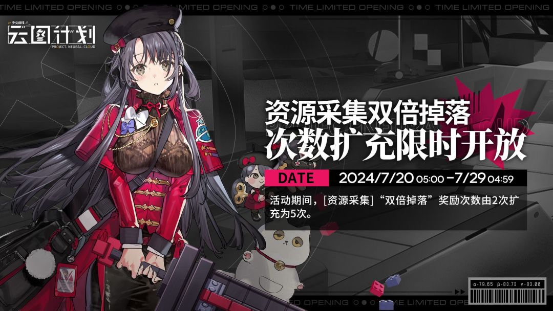 亲爱的教授,7月20日05:00~7月29日04:59期间,【资源采集】中“双倍掉落”奖励次数将由2次扩充为5次!