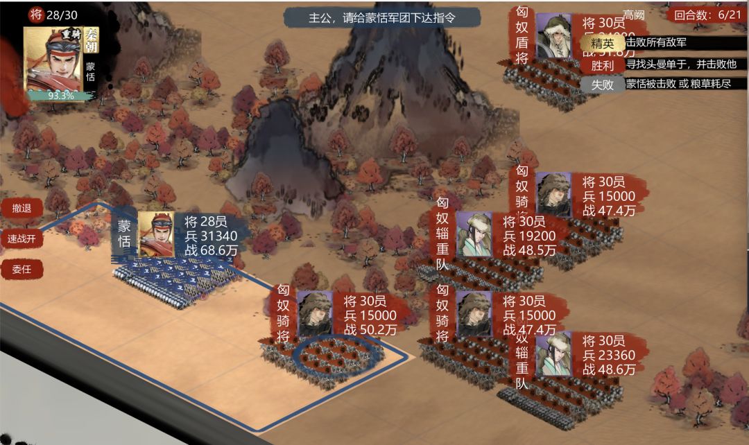 秦匈奴简直是梦魇,连续7天每天三次重置,试过无数办法只能通关,历史精英奖励只能等后续官方进行优化调整降低难度(要是有大神过了历史精英跪求解答疑惑),秦匈奴不同于赵、汉,后期可以随便推(策划脑子不知道刮什么风),赵资源少,但难度低,汉难度大,但资源多,秦就比较尴尬了.