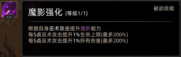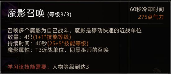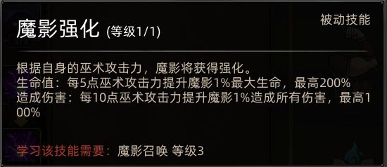 减少了魔影召唤数量(1只),降低了魔影存在时间(10秒),提升了魔影攻击和生命