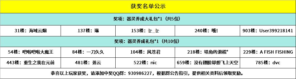 恭喜以下幸运的小骑士获得活动奖励,请中奖的小骑士添加获奖群:930986227,请加获奖群后,登记相关获奖信息,超过15个自然日未进群未登记视为放弃奖励~
