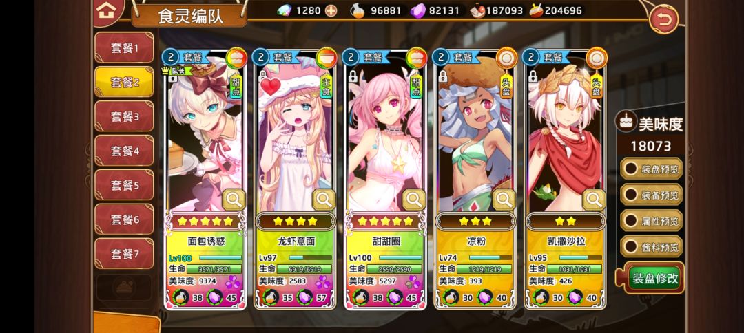 打发和一区一样,主练一队,二队辅助。由于没有大福,还有些不习惯,MVP是烤串,他是真厉害,带的金酱料。队伍强度要求不高,具体见下。