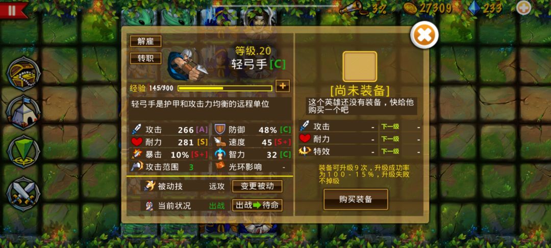 买武士路上遇见数值比较好的远攻火法也买,如果是数值很不错的远攻轻弓手也能买,说不定以后转弓手玩。