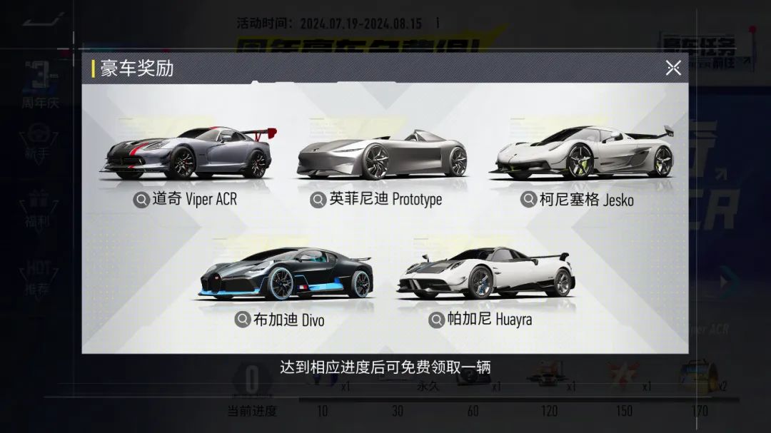 7月19日,周年豪车活动再度开启,积攒周年豪车积分,解锁豪车自选包、周年豪车蓝图自选包、终极芯片等奖励,提车就像呼吸一样简单~