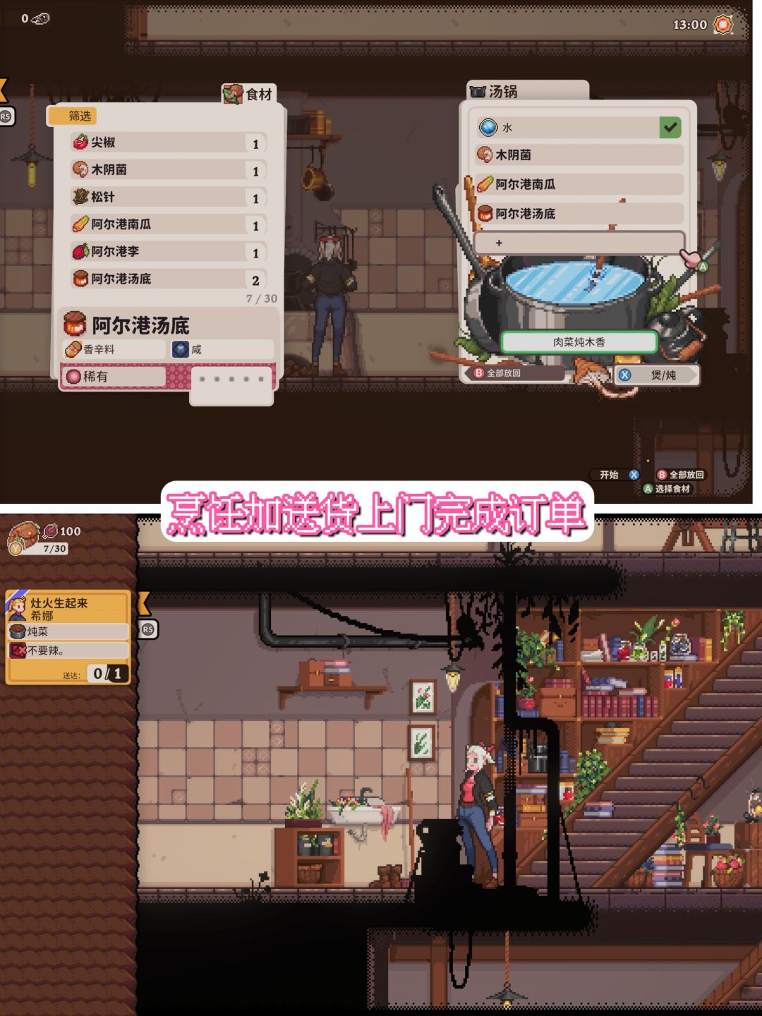 论玩法,烹饪模拟看起来是休闲游戏,但跑路,出去采食材,还有机关陷阱啥的…做个饭真累。做饭已经很累啦,还得去送餐。初期的体验有点枯燥~