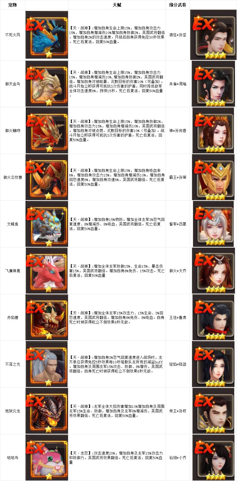 EX宠物天赋一览