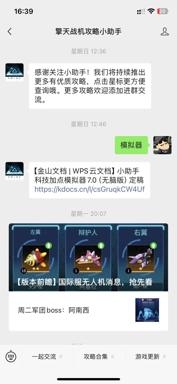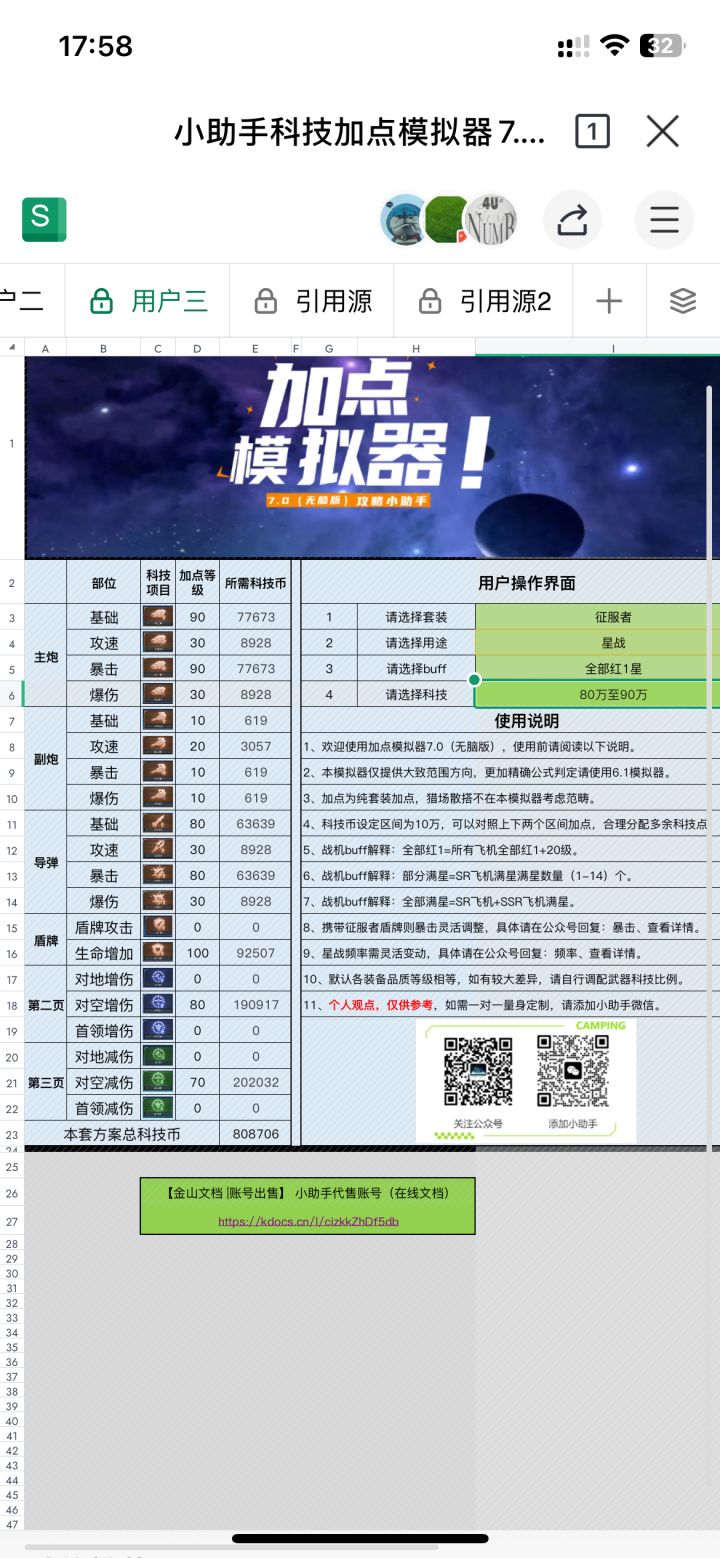 前提:第一 :这里要说一下装备,星际争霸我们到底穿什么装备去打去防守,很多人都带的硬石,其实带硬石是有条件的,硬石飞机等级 星级 盾牌 飞行员息息相关,其实带硬石飞机有个硬性要求至少要彩1星80级才能做到血量高还有伤害,不然同级别套装飞机碾压硬石,数据对比有图可以查看,不能盲目的就带硬石, 第二:科技修改,怎么样改科技其实其他人还是有点迷茫,这里给大家一个方向VX关注:擎天战机攻略小组手 如图 根据自己的科技点多少自己调取,科技改了真实有效本人亲测 第三:争霸开始时间周一中午12点开始匹配完成,这时都能进去战场调看对方各项数据,这边不得不说一句好多人都是脱完装备的,有些人可能要等到晚上才会穿回最强装备,因为要打泰坦各种,🐶的很,准备阶段时间到周二中午12点有一天的时间可以观察对面数据,飞行员 装备 科技 战术安排:开局根据前一天观察的数据找准比自己低并且自己可以做到一击必杀的对手最少1个最多3个战力差距在15万以内,不可高战力扫荡低战力,没有对手的或者小号就当工具人破道具跟补刀