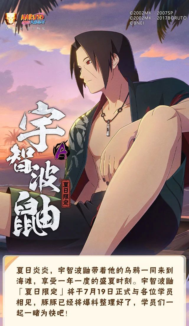 宇智波鼬「夏日限定」即将登场星光闪耀,如幻似真,盘栖枝头的乌鸦等待同伴归来,而他置身于编织的夏夜之中,静静地注视着烟火绽放…… 全新夏日季忍者——宇智波鼬「夏日限定」将在7月19日正式登场!