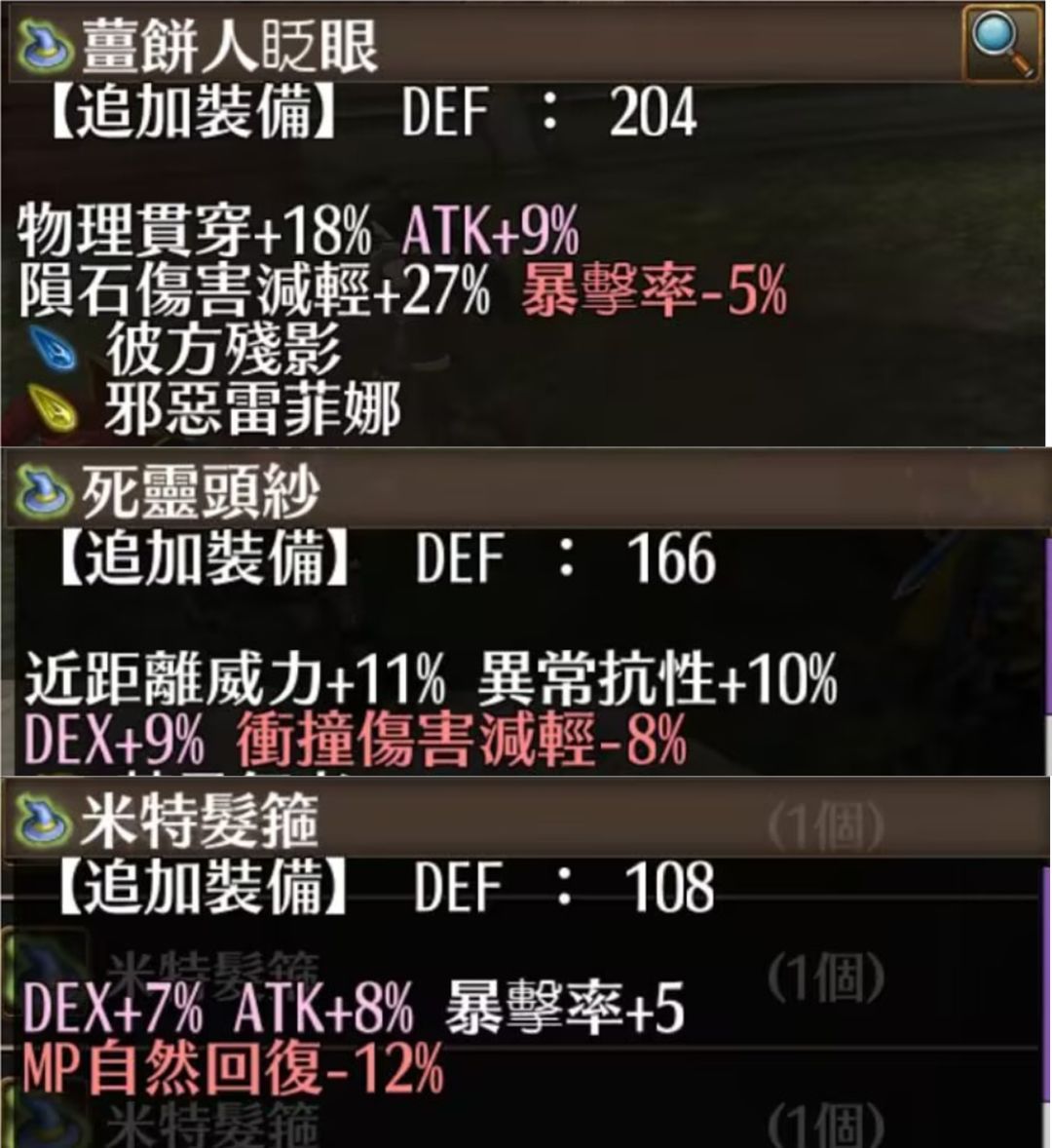 过渡用米特,便宜好用,打高防用姜饼人眨眼,价格不贵,死灵头纱是毕业装备。