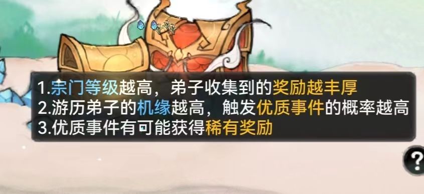 - 机缘大小应该只影响游历遇到事件的概率以及获得稀有奖励的概率,而不影响”奖励“