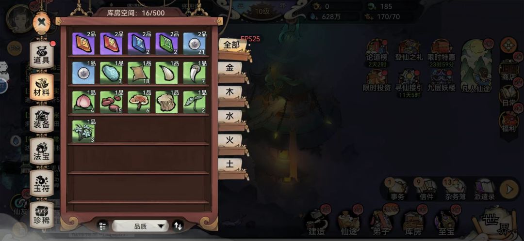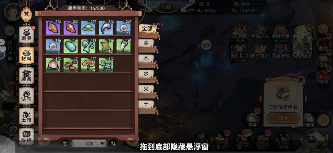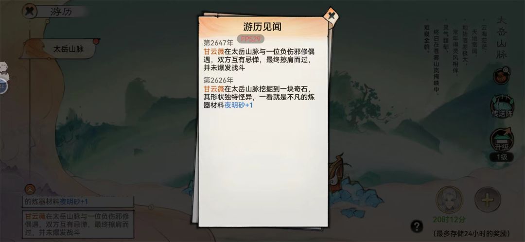- 游历见闻中获得的东西直接在库房显示,而不会出现在传送阵面板和弟子的包裹中。