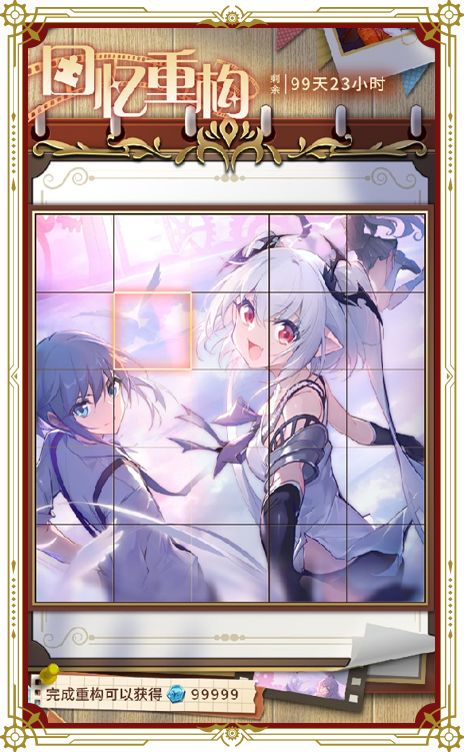 1、活动开启后会定时解锁关卡,在关卡中调整每一块元素的位置使其拼合为完整的画面即可完成关卡;