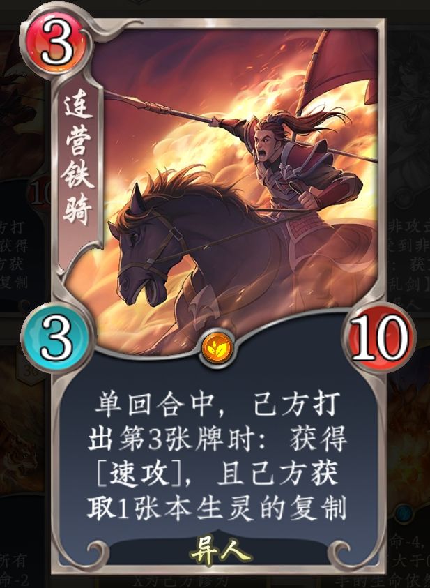 一费上火焰杯或者留费打雷霆,二费黄石公,三费用上上签然后铁骑然后灵玉或者其他一费牌,这样三费的时候场面就比较可观了,后面连就完事了,一般上了五费就很好打了,韧性很强,就是燕子啊清场啊(除了碧落)随便吃,下一回合我又是一条好汉。