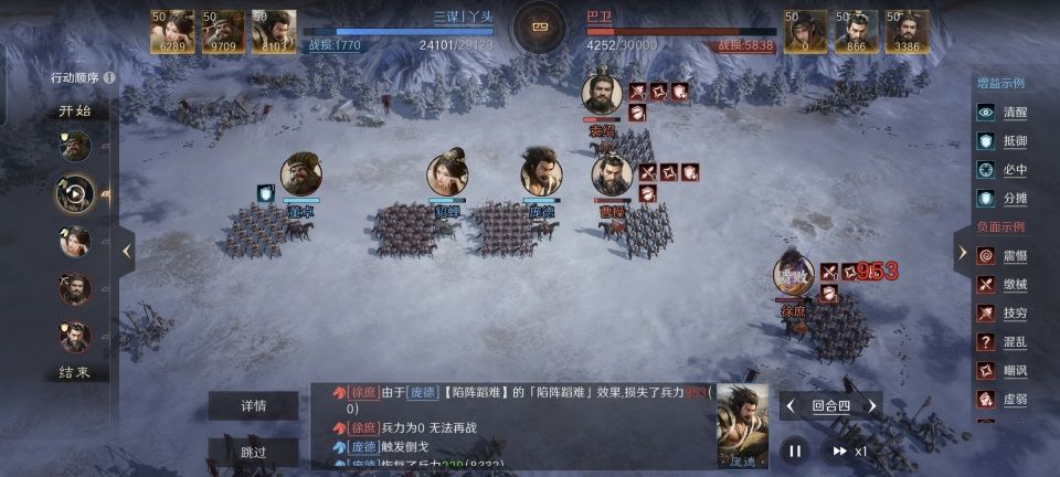 三谋丨丫头在此战摆出箕形阵,持有闭月特技的貂蝉对于全体男性武将都有极高的抗性,故而她总是在前排挡刀。只不过在这支队伍里的区别是,那个每回合为她出头的男人变成了庞德。貂蝉的第二和第三战法,分别学习了坚如磐石和避其锐气,韬略库的三本书依次是练士善本、兵情善本和相怜。通过嘲讽对面全体来伤害自己,跟庞德更多出手的机会,还是带着破甲伤害的那种,足见貂蝉对“新欢”庞德的武艺也是信心十足!