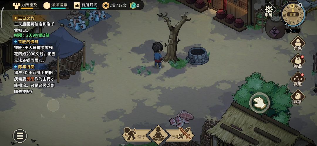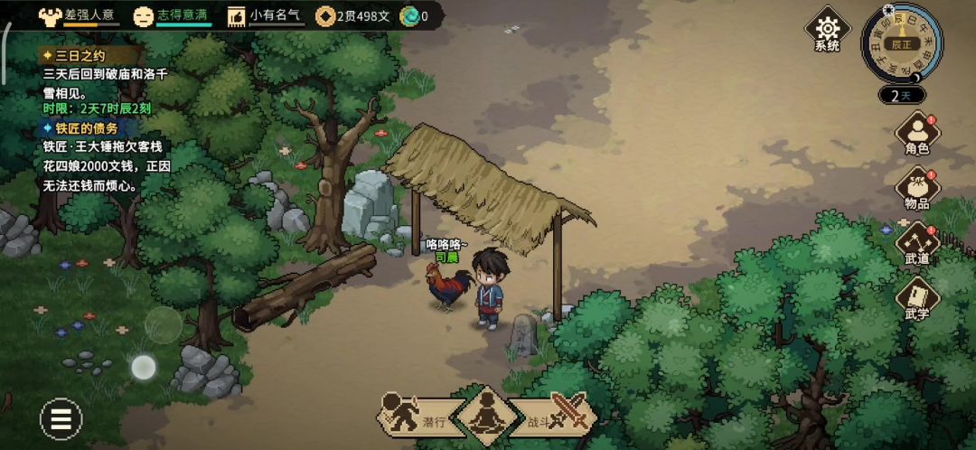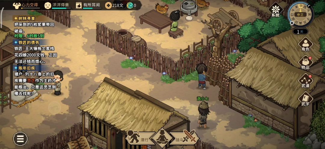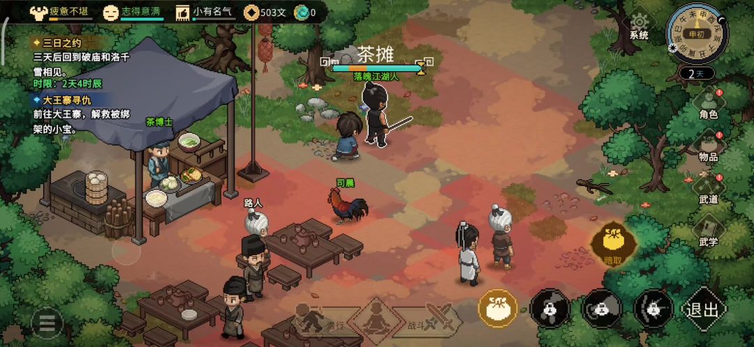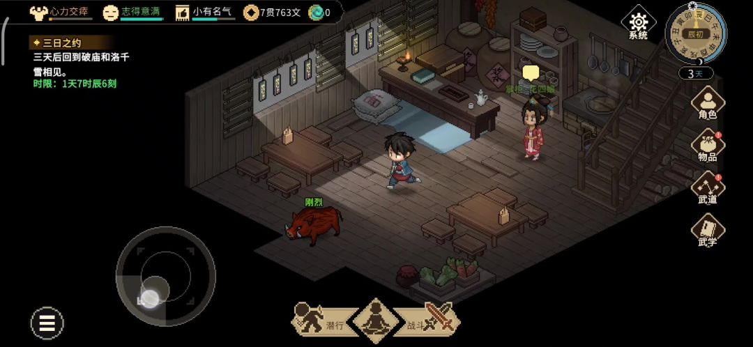 ●支线1(时间要求辰时-午时这个时间段)出门再进来,触发泼皮剧情,选择战斗