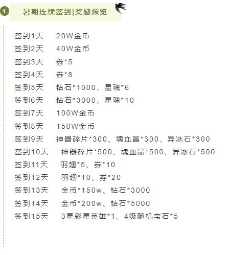 勇士们只要在 7月 20 日 - 8月15日期间,在签到活动页中打卡,即可获得超多福利噢!