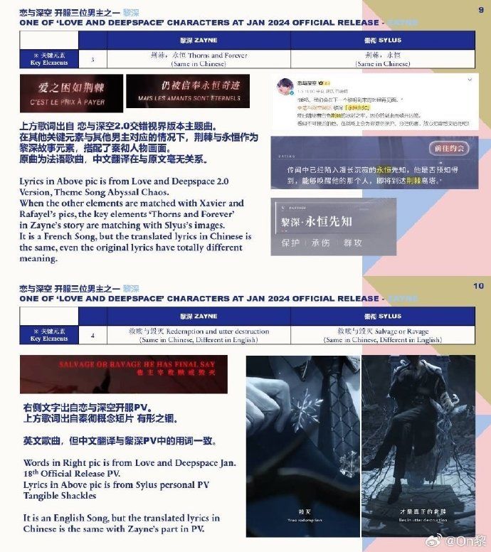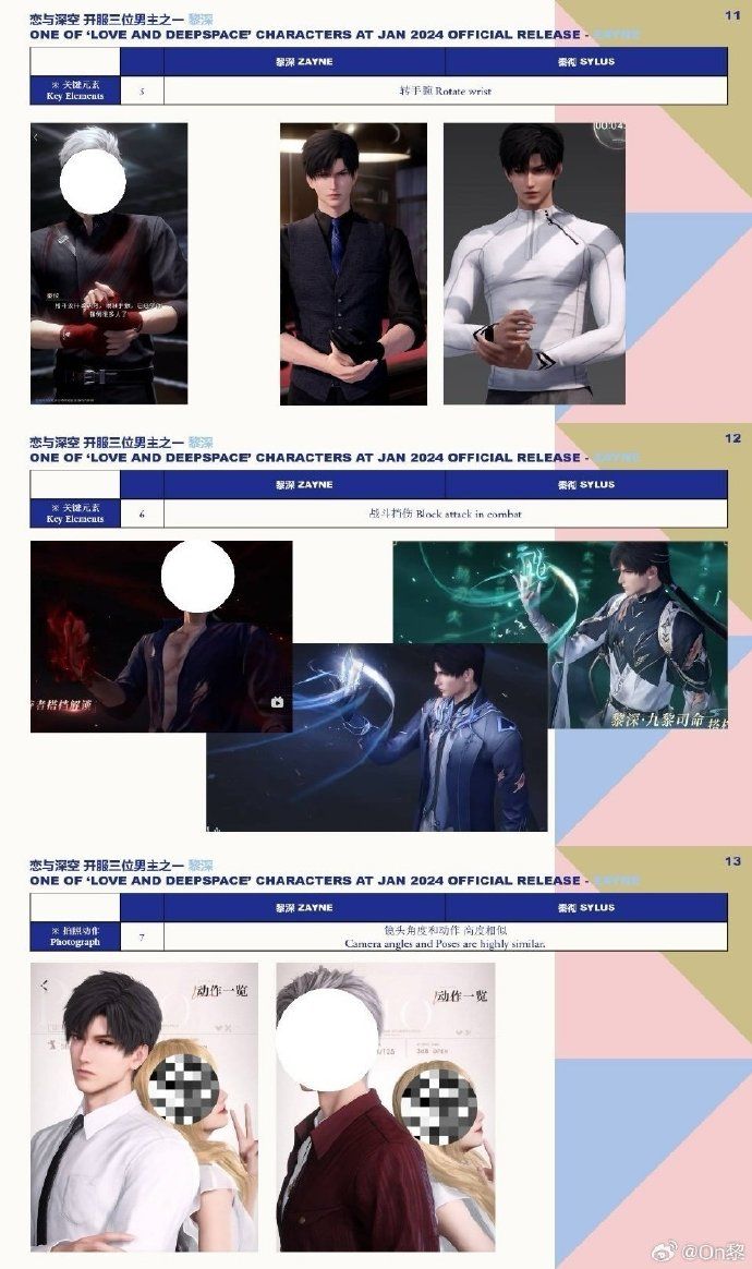 恋与深空中喜爱黎深的玩家指出秦彻制作组抄袭黎深文案,图中相同地方高达【20多处】,甚至连拍照动作都雷同,他们认为虽然是同游戏内的角色,但是不同男主是由不同制作组负责,秦彻制作组是在抄袭黎深制作组