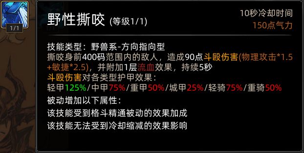 野性撕咬替换为狂狼突刺