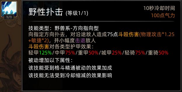 野性之魂开局新增基础格斗,如下所示: