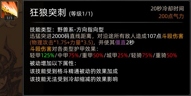 狼极强化的狂狼突刺,伤害提升,追加强控效果