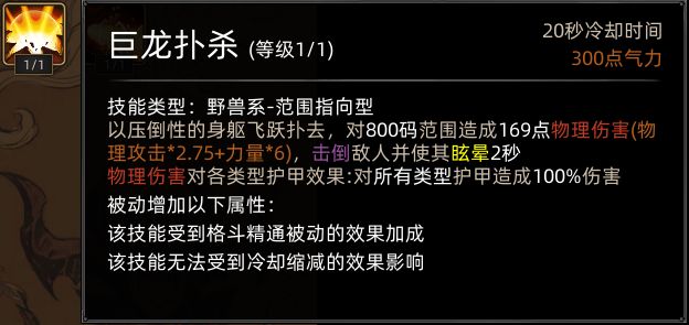 变身为黑龙后,野性撕咬替换为巨龙扑杀