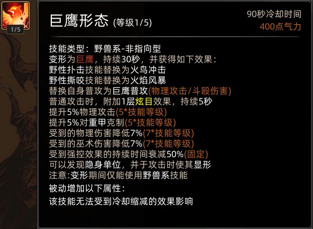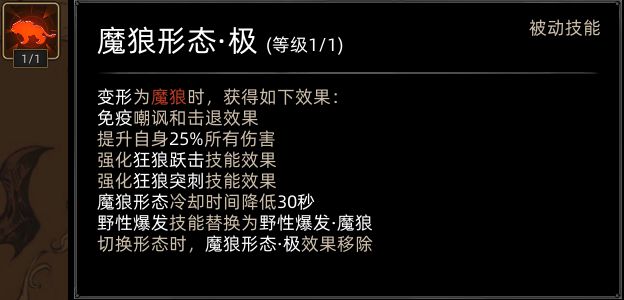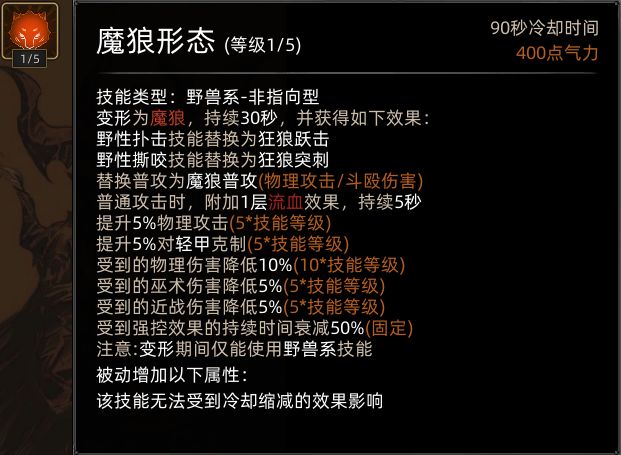 先说两句前言,野性之魂这套技能页由于变身后无法使用主动技能,因此在本mod环境下,不能学习技能尤其是连续技和宗师4阶那些较为强力的技能,也无法触发队友连携,因此是极其弱势的,基于这些原因,作者放弃了对原技能页进行优化,而是选择了在不改变角色背景特性的情况下,对原技能页进行魔改。