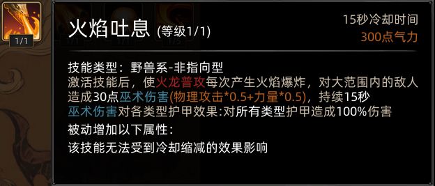 变身为火龙后,野性扑击替换为火焰吐息