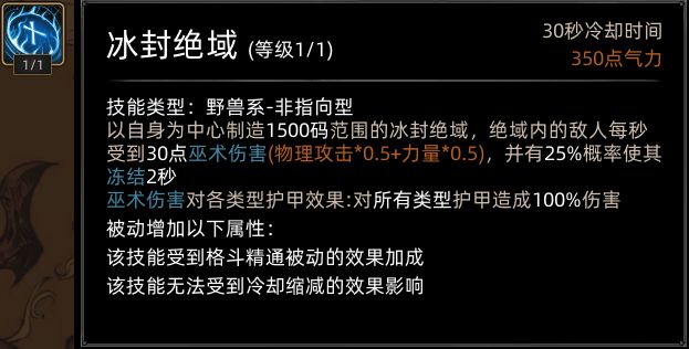 学习龙极后,野性爆发替换为冰封绝域