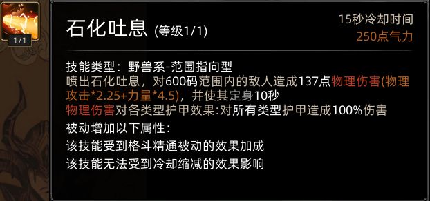 变身为黑龙后,野性扑击替换为石化吐息