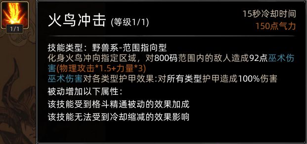鹰极强化的火鸟冲击,伤害提升,追加火焰地带