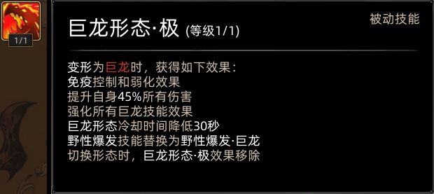 学习龙极后,野性爆发替换为末日审判