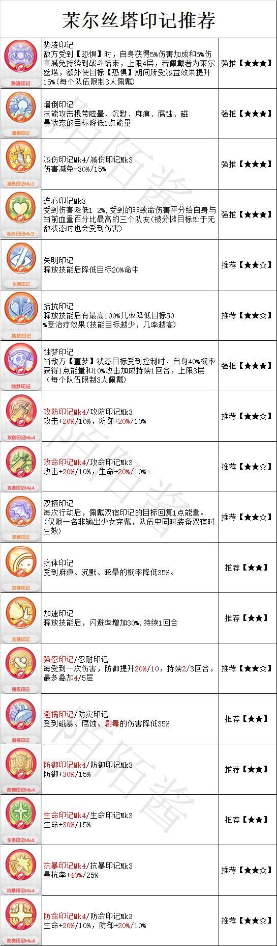 3、茉尔丝塔的技能对象是"能量最高的目标",为了防止关键角色被恐惧,可以给其他角色带上活力印记或能量印记等来吸引火力。