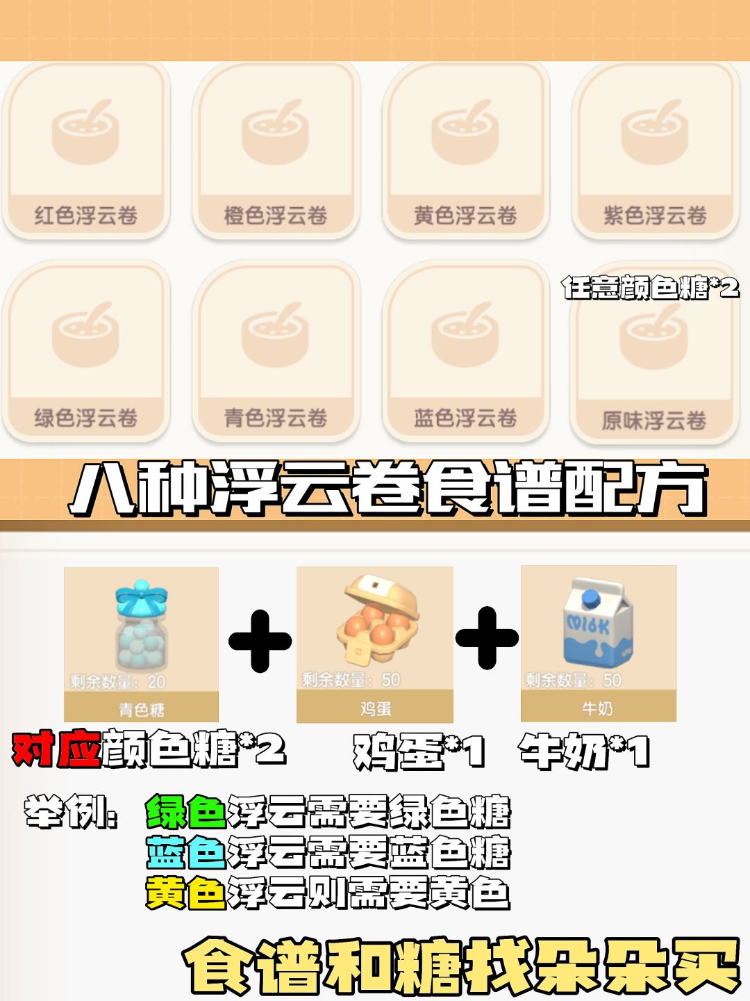 朵朵会在雨天及彩虹天出现!可以购买浮云卷的食谱及食材 不要错过啦!!