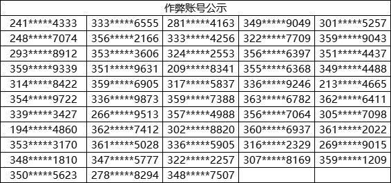 以下为近期在游戏内涉嫌作弊等违规行为的账号: