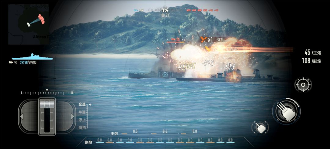 2、观察与敌舰的距离来判断舰炮的瞄准方向