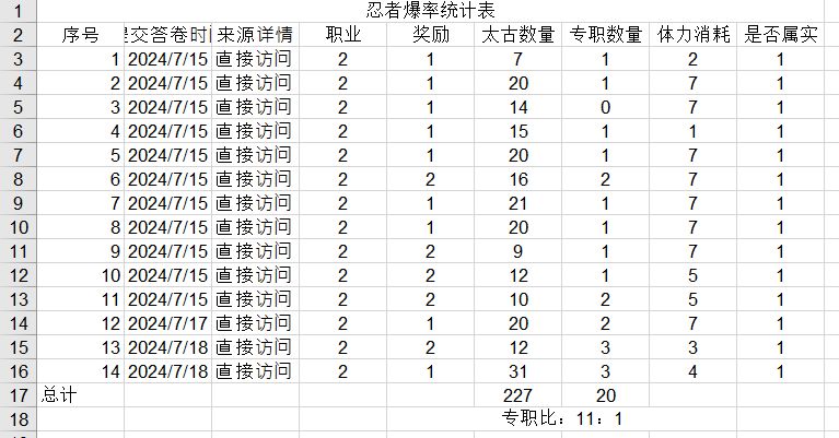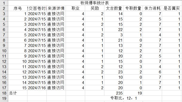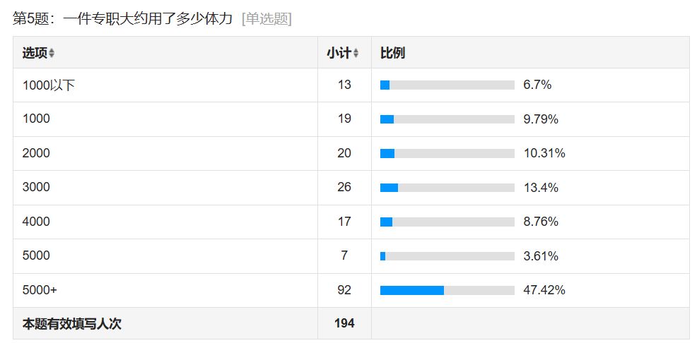 【问卷统计】关于专职太古的五职业爆率统计结果