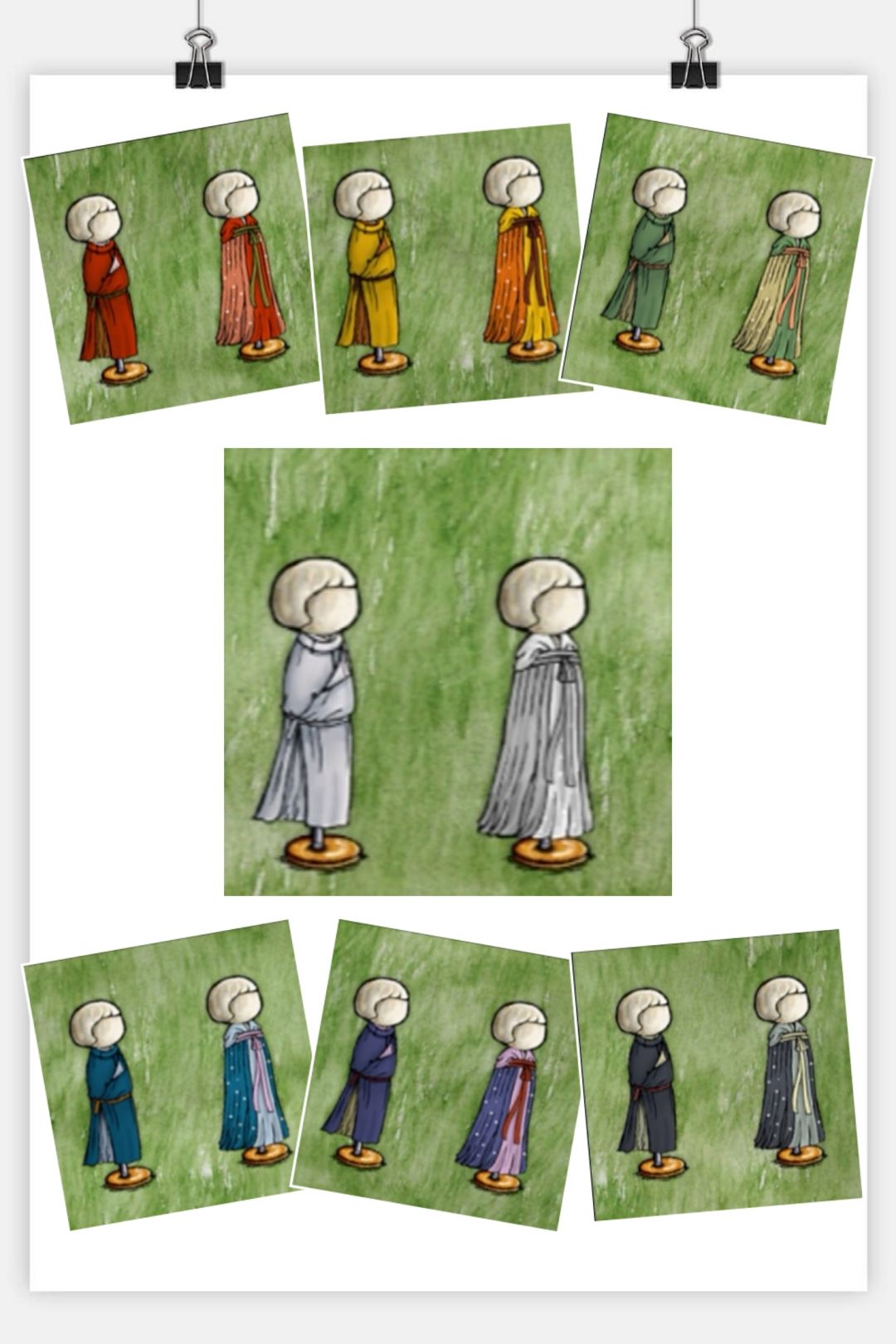 ②缺胯男袍=齐胸襦裙+剪刀(红、黄、蓝、绿、紫、黑、白)