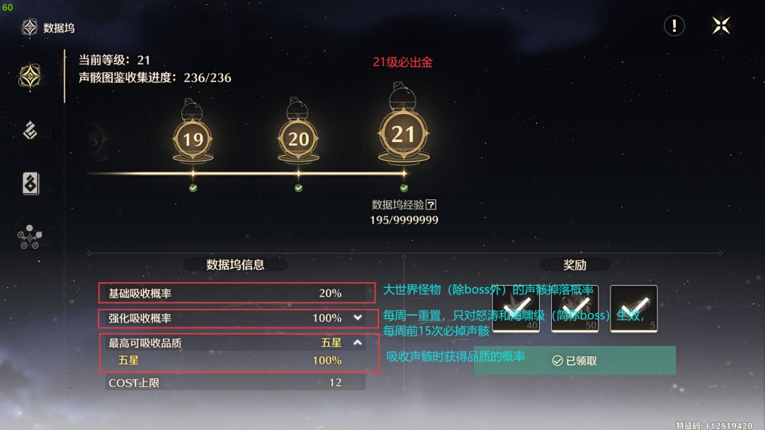 40级之后:这时才算正式的开始声骸养成之路,数据坞21级百分百出金