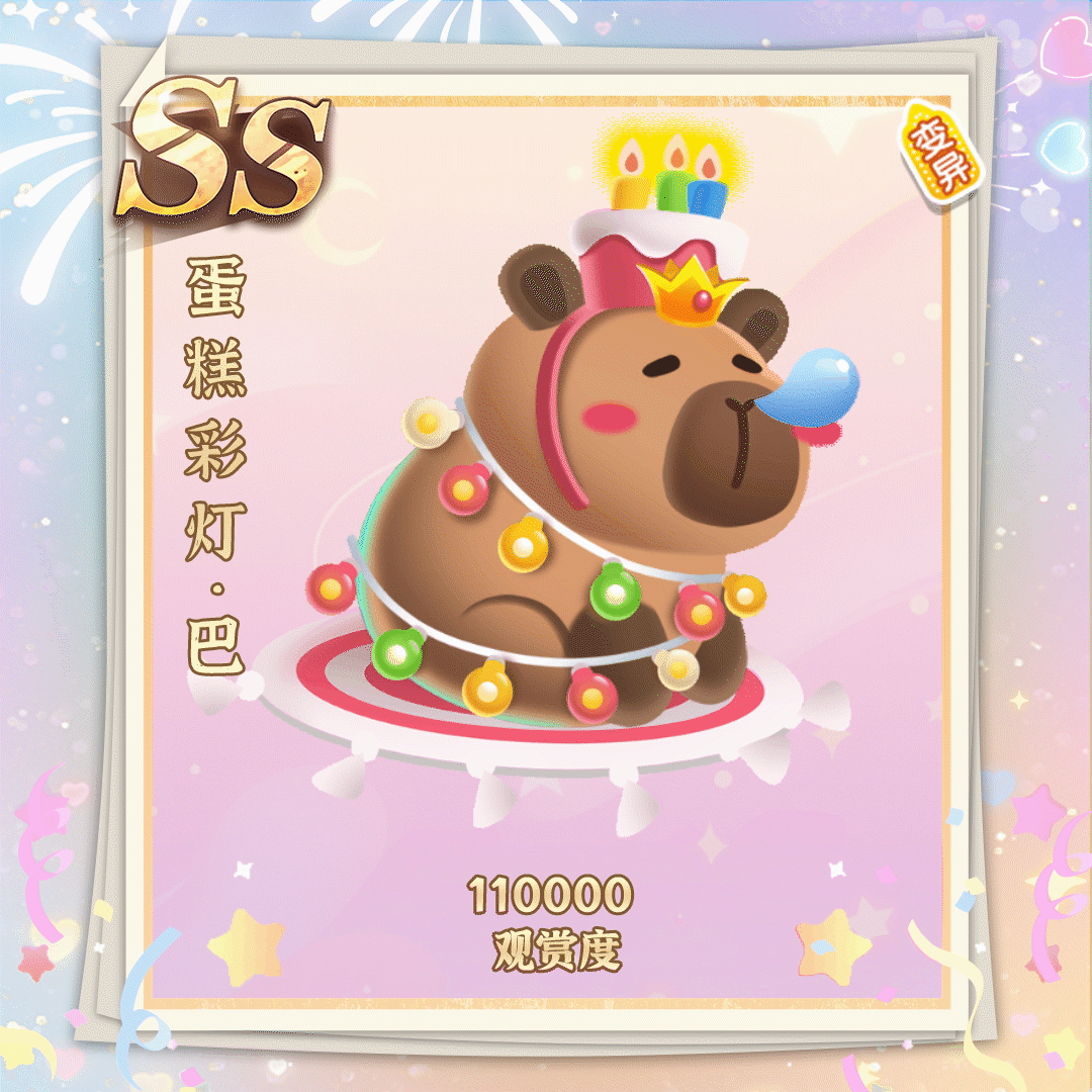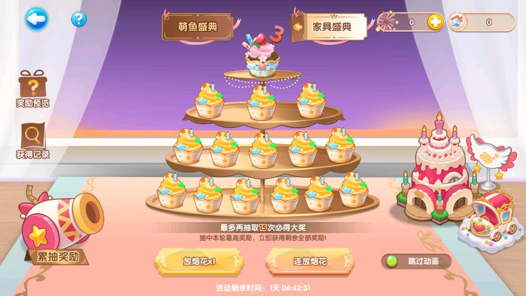 使用萌鱼烟花道具点亮蜡烛开启烟花秀,可获得游戏道具奖励,最高奖励为新鱼卡皮巴拉,每次抽奖得奶油币(用于周年商店兑换奖励)~