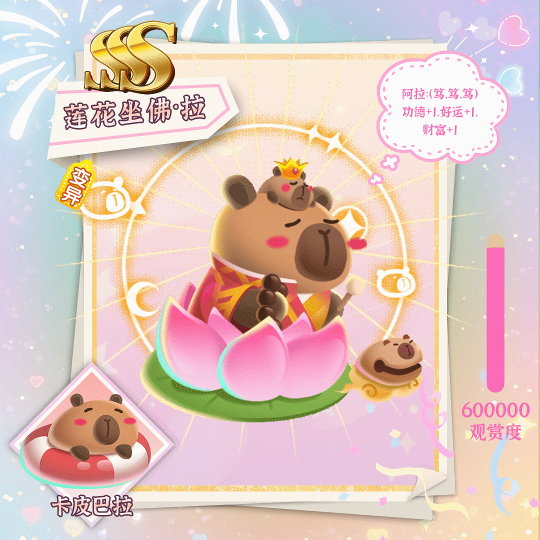 活动十天每日签到各种奖励领到手软,卡皮巴拉萌鱼、三周年快乐头像框、月卡(5天)、管家卡(3天)、萌鱼烟花、家具烟花(盛典放烟花抽取道具)等奖励等你全部抱回家!