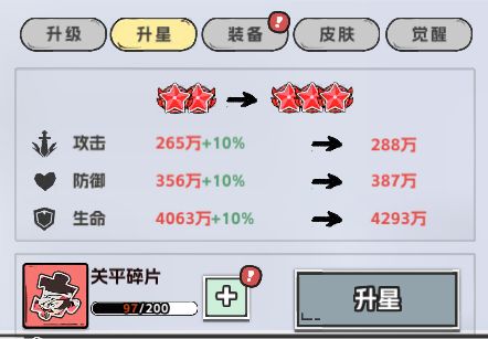 3→4阶:消耗高级觉醒药50-100-150共3个星级;