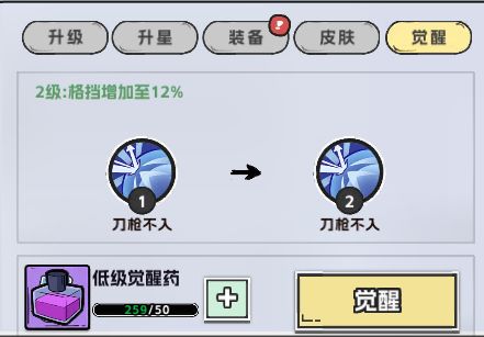 1→2阶:消耗低级觉醒药50-100-150共3个星级;