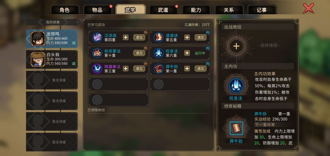 #### 6. 角色培养和技能升级