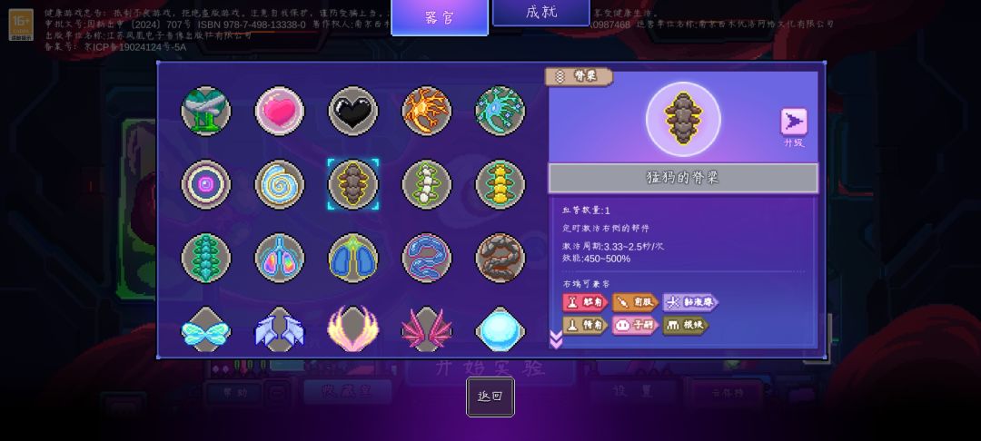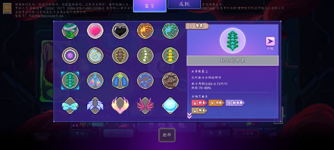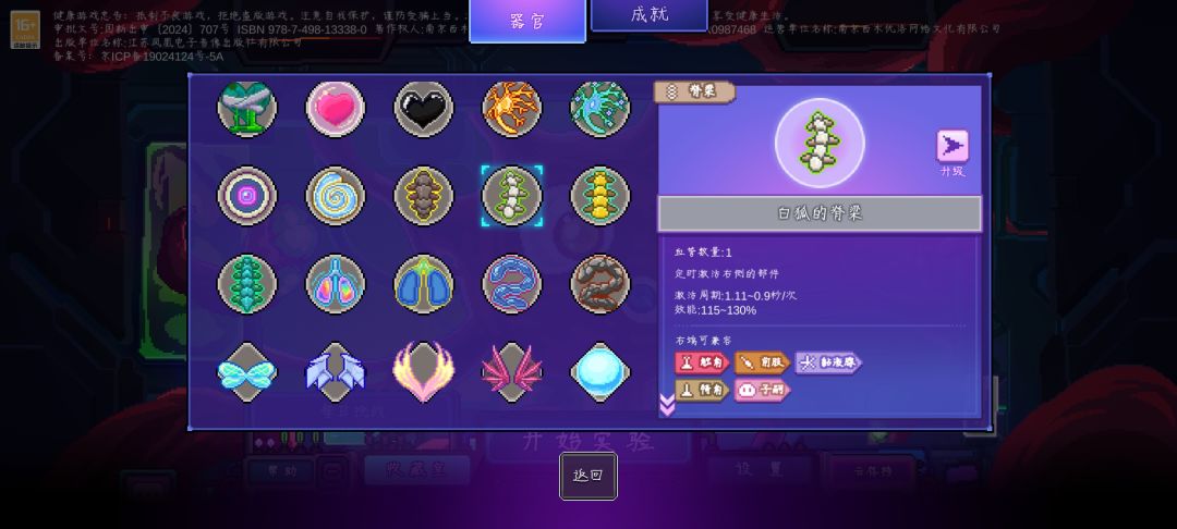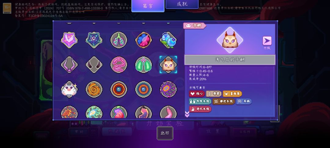 1.每次升级时可以获得一个器官部件。