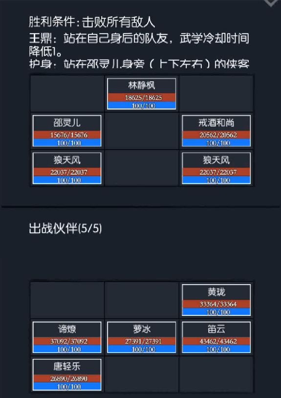 如果没有以上,就避开上阵回复侠客,可以上小山帮忙扛一下