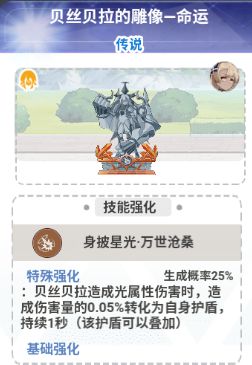 贝斯丝贝拉最重要的输出手段。金拥有八秒钟技能加成。能够对敌方有两百倍的光属性伤害,而且这个伤害是可以暴击。合到主战属性的暴击率,基本上大招是必定暴击的。